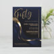Celebrate your milestone 50th birthday in style with our chic and sophisticated blue party invitation. With its customisable text, you can personalise the invitation. This invitation features a fine gold frame that encloses the text, adding a touch of luxury to your special occasion. The gold and blue abstract wavy ribbon design adds a modern and stylish look to the invitation and creates a sense of flow and movement. The overall design is understated yet beautiful, making it perfect for those who prefer a more refined aesthetic.
