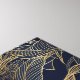 Elegant and simple dark blue leaves with faux gold foil outline houseplant hand-drawn illustration, filled with a beautiful tropical greenery pattern, jungle foliage, navy-blue leaves vegetation greenhouse, gold strokes line art, botanical floral nature hand painting, contemporary plant design, navy blue background.