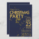 Modern Blue Gold glitter confetti Christmas Party Invitation