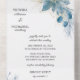 This All-in-One wedding invitation is designed to encapsulate the enchanting essence of winter with elegant blue and gold poinsettias that beautifully reflect the romance of your love story with the charm of the winter season. The All-in-One wedding invitations are both beautiful and practical by combining the wedding invitation with an easy to remove perforated RSVP postcard. They are also quick and easy to prepare for mailing. Simply address the invitation, fold the back flap and seal with the included clear stickers. Once your guests receive the pre-addressed invitation they simply tear off the perforated RSVP card and drop it in the mail.