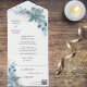 This All-in-One wedding invitation is designed to encapsulate the enchanting essence of winter with elegant blue and gold poinsettias that beautifully reflect the romance of your love story with the charm of the winter season. The All-in-One wedding invitations are both beautiful and practical by combining the wedding invitation with an easy to remove perforated RSVP postcard. They are also quick and easy to prepare for mailing. Simply address the invitation, fold the back flap and seal with the included clear stickers. Once your guests receive the pre-addressed invitation they simply tear off the perforated RSVP card and drop it in the mail. The addition of the QR code allows your guests to easily access your wedding website for information including reception details and dinner choices!