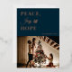 Modern Blue Gold Script Peace Joy Hope Photo Foil Holiday Card