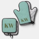 Modern Blue Green Monogram Initials Personalised Oven Mitt & Pot Holder Set