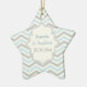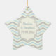Modern baby blue, grey, ivory chevron pattern custom ornament design. There is a frame with your names and date in the centre. Add your text, monogram or initials. A stylish zig zag design using the classic stripes with contemporary yet vintage look in a sense that can be personalised. You can change background and text colour choosing from over 200 colours from Zazzle colour chart. Elegant, classy and playful design to protect your electronic devices.