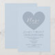 Celebrate your love with this elegant light blue elopement invitation featuring a large heart graphic and modern calligraphy that reads "Elope with us." Perfect for intimate ceremonies, this minimalist wedding invite sets a romantic tone for a private union, followed by dinner and reception details. Fully customisable with names, date, time, and venue—ideal for modern couples choosing a small, heartfelt celebration.