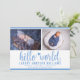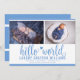 A blue hand-lettered hello world photo birth announcement postcard to welcome your new arrival. Send out this card to friends and family so they can see your new bundle of joy.