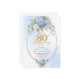 Celebrate a remarkable milestone with this 80th birthday invitation featuring one of today’s most trendy and elegant color combinations: blue and gold. Designed with soft watercolor blue hydrangeas, fresh eucalyptus greenery, and refined gold floral accents, this invitation brings a sense of calm sophistication and joyful celebration to an unforgettable occasion.
