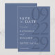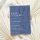 Easily personalize your wedding save the date cards with this editable template. Features minimal elegant typography design in blue color.