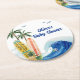 Modern Blue Ocean Wave Surfboard Baby Shower Round Paper Coaster