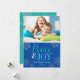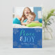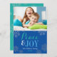 Modern Blue Peace and Joy Snowflake Photo Holiday Card