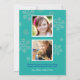 Modern and colourful holiday photo greeting card features elegant Peace & Joy text, custom text on the front and back, and space to include three (3) photos. A border of platinum grey coloured snowflakes provide accent this modern card design in vibrant wintery shades of royal blue, teal green, and white - which can all be modified.