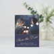 Modern and elegant midnight blue wedding save the date postcard with a photo. The text is in a TRENDY script and overlays the photo on the front. The background is dark midnight blue. You can easily customise all the text on the front and the backside of the card - personalise it with the bride`s name, groom`s name, date, time, location, and change or erase any text. This save the date postcard goes with other items in the Yellow rose Midnight blue wedding collection - you can find them bellow this invite.