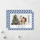 Custom blue and white plaid photo holiday card featuring a blue and white chequered pattern. Easily personalise this blue gingham photo holiday card with your photo and family name.