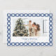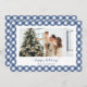 Modern Blue Plaid Calligraphy Photo Holiday Card