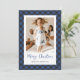 Modern Blue Plaid Photo Merry Christmas Holiday Card