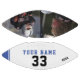 Modern Blue Player Name Number 2 Photo Collage Football. Add your photo, player`s name, number and year. You can change any text on the football. A perfect gift for a football player, teammates and coach. Great keepsake to remember the favourite sport.
