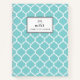 Modern Blue Quatrefoil Pattern Personalised Notebook. Customisable modern notebook featuring sea glass blue and white quatrefoil pattern. This modern and chic notebook will be perfect as a personalised gift.