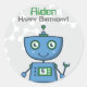 Blue robot birthday party favour sticker can be personalised with a name. Colours include green, blue and grey.