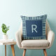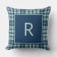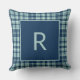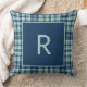 Modern blue sage green plaid monogram cushion