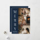 Modern Blue Script Merry Christmas Photo Holiday Card