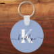 Modern Blue Script Monogram Key Ring