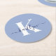 These simple, elegant light blue round paper coasters with your first name in a trendy script font in navy blue typed over your first initial in a modern cap font in white are perfect for keeping your tables and counters free from water rings. They absorb droplets so you don't have to worry when your entertaining or enjoying a drink. They're stylish and trendy and yet very classic.