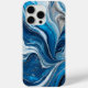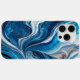 Elegant iPhone case using blue shades with silver highlights marble flowing pattern