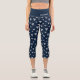 Modern Blue Silver Heart Pattern Personalised Name Capri Leggings