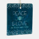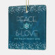 “Peace, joy & love.” This ornament, with a fun, playful, snowflake illustration and modern typography on a rich, deep teal blue marble watercolor background helps you usher in the holiday season. White confetti dots frame complete the look. On the back is a giant turquoise and white snowflake. Feel the warmth and joy of the holiday season whenever you hang up this stunning, colorful holiday custom keepsake ornament. Matching cards, envelopes, wrapping paper, mugs, blankets, pillows, home décor, and more are also available. A great gift for someone special, even yourself!