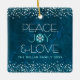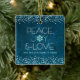 Modern Blue Snowflake Peace Joy Love Custom Name Ceramic Ornament