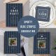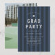 Modern graduation party invitation with a sporty, blue striped background, ideal for athletes.