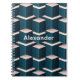 Modern Blue Square Geometric Pattern Personalise Notebook