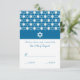This modern and stylish bar mitzvah jewish religious invitation RSVP flat card features a star of david symbol and pattern on a blue background.