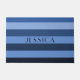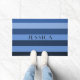 Modern Blue Stripes Pattern Custom Name Doormat.