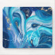 Modern Blue Swirl Agate Iridescent Custom Name Mouse Mat