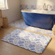Modern Blue Toile Cacao and Chocolate Pattern Bath Mat