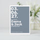 Announce your special day with this modern and stylish save the date card, designed to make a bold impression with its striking vertical white date display on a sophisticated slate blue background. The clean, minimalist layout features contemporary, trendy white block typography that stands out, creating a crisp and memorable look perfect for today’s modern weddings. Spacious formatting and sharp lines keep the design fresh and uncluttered, while the palette adds a touch of refined elegance. Ideal for couples seeking a cohesive and on-trend aesthetic, this save the date perfectly coordinates with matching invitations and RSVP cards, ensuring a unified and polished wedding stationery suite. The result is an effortlessly chic announcement that sets the tone for a contemporary celebration filled with style and intention.