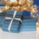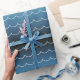 Make your gifts stand out with wrapping paper featuring a stylish modern pattern featuring white curving waves on a blue gradient that goes from light blue to navy blue and back to pale blue.