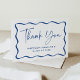 Modern Blue Wavy Frame Photo Graduation Thank You Card