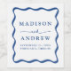 Add a personalised touch to your wedding reception, engagement party, or rehearsal dinner with these custom Modern Blue Wavy Frame wine labels. The design displays your names, wedding date, and wedding location in bold blue lettering surrounded by a blue wavy border contrasting with a white background. The retro wine labels coordinate with our Modern Wavy Frame wedding collection.