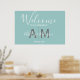 Modern Blue Wedding Couples Monogram Welcome Poster