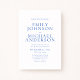 This modern wedding invitation features a clean white layout with elegant blue typography for a timeless and minimalist look. The design is simple, refined, and uncluttered, making it perfect for couples who prefer a classic modern wedding style. The back of the invitation is a solid blue color, adding a polished and contemporary finish.