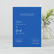 Embrace a sophisticated and eco-friendly approach to your wedding announcements with this striking blue invitation. The design features a prominent QR code, a modern essential that connects guests directly to your wedding website for comprehensive details. Share your love story, event schedule, and RSVP information effortlessly. This invitation is printed on sustainable materials, reflecting your commitment to the planet without compromising on style. The rich royal blue is a classic choice that exudes elegance and ensures your guests receive a memorable first impression.