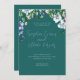 Modern Blue, White and Green Floral Green Wedding Invitation