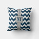 Modern Blue White Grey Monogrammed Chevron Cushion
