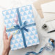 Modern Blue White Pattern Gold Text Birthday Gift Wrapping Paper