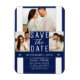 Modern Blue & White Save the Date 3 Photo Wedding Magnet