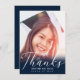 Modern Blue White Script Photo Blue Graduation Thank You Card