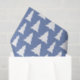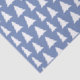 Modern holiday pattern tissue paper features white geometric trees in varying sizes on a blue background. Perfect for any winter holiday.