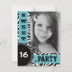 A very modern and stylish black and white zebra pattern design that works well with black and white photographs of your daughter celebrating her sweet sixteenth birthday! High contrast or selective colour photos would also look sharp! This design features bold electric blue colour bands, large block letter text and wild zebra print pattern to draw attention to the most important part of the page - your sweet 16er! Invite all of her girl friends to a special sweet 16 celebration with this pretty feminine, high fashion and trendy card. . It has several easy to customise text areas on the reverse side for your birthday girl's name and all sleepover or celebration party details, as well as rsvp contact information. Click the handy customise button to resize/reposition your photo if necessary and ensure that it covers the entire photo area.